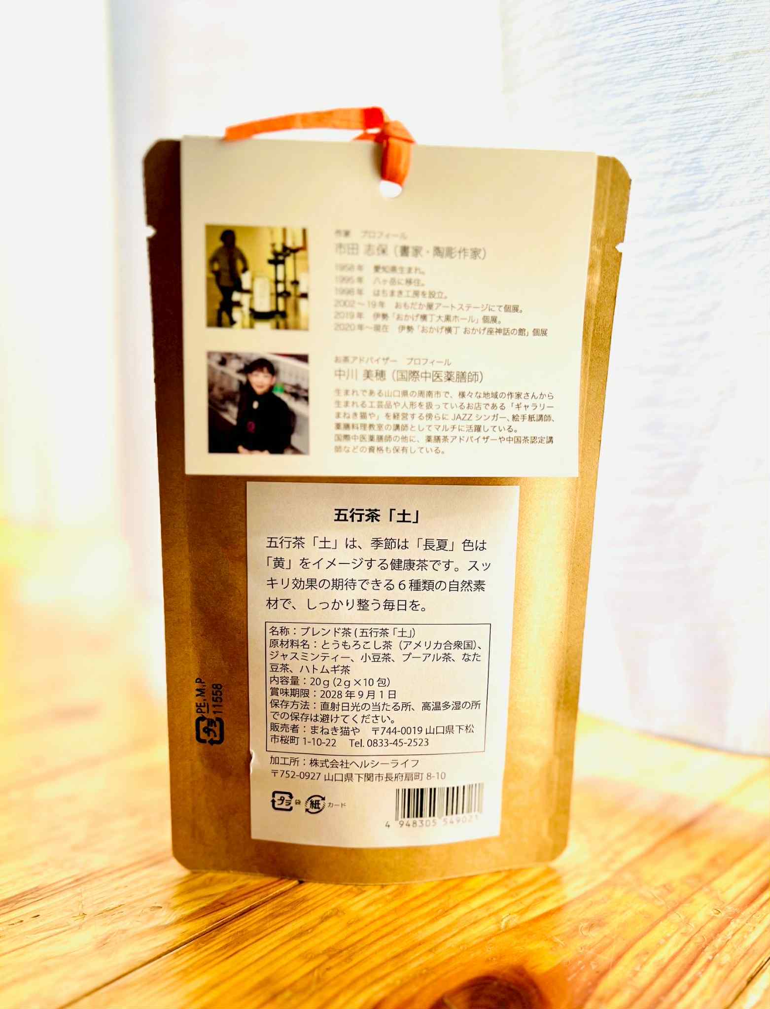 五行茶「土」は、季節は「長夏」色は「黄」をイメージする健康茶です。スッキリ効果の期待できる6種類の自然素材で、しっかり整う毎日を。